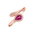Obklopený aurou luxusu, tento prsten z 18kt růžového zlata, zdobený diamanty a rubínem, je skvostem, který odráží hloubku a sofistikovanost. Jeho srdce je jako okno do světa nekonečné elegance. Šperk je součástí kolekce Luxury Classic.