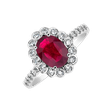 Tento prsten, vytvořený z nejčistšího 14kt bílého zlata a osázený diamanty, které intenzivně září jako hvězdy na noční obloze, je v srdci korunován ohnivým rubínem, symbolizujícím vášnivou a nezničitelnou lásku. Šperk je součástí kolekce Diana.