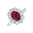 Prsten z 14kt bílého zlata zdobený diamanty a rubínem je jako vášnivý výbuch barev a emocí. Jeho krásný rubín a třpytivé diamanty vytvářejí šperk, který zaujme každého svou elegancí a krásou. Šperk je součástí kolekce Diana.