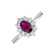 Tento prsten z 14kt bílého zlata s diamanty a rubínem je dokonalým doplňkem pro každou příležitost. Jeho minimalistický a přitom elegantní design vyzdvihne krásu každého, kdo ho nosí. Šperk je součástí kolekce Diana.