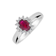 Prsten 14kt bílého zlata s diamanty a rubínem je jako líbezná píseň zachycující esenci krásy a harmonie. Tento šperk je stvořen pro okamžiky, kdy chcete zazářit jako nikdy předtím. Šperk je součástí kolekce Diana.