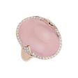 Prsten z 18kt růžového zlata s diamanty, jehož krásu zdůrazňuje nádherný růženín, je symbolem elegance a nadčasové krásy. Jeho rafinovaný design a zářivost růženínu přináší pocit luxusu a výjimečnosti. Šperk je součástí kolekce Blossoms.