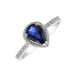 Prsten z 18kt bílého zlata, zdobený diamanty a safírem, je symbolem sofistikovanosti a jedinečného vkusu. Jeho design vás okouzlí. Šperk je součástí kolekce Diana.