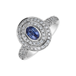 Noblesní prsten s okouzlující romantickou symfonií diamantového třpytu zahalující snový safír do čarokrásně třpytivé aury.