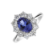 Prsten z 14kt bílého zlata zdobený diamanty a tanzanitem je jako cesta do tajemného světa plného barev. Jeho krásný tanzanit a třpytivé diamanty vytvářejí šperk, který zaujme každého svou elegancí a krásou. Šperk je součástí kolekce Diana.