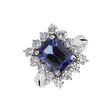 Tento dechberoucí prsten z 14kt bílého zlata s diamanty a tanzanitem je mistrovským dílem. Jeho pestrobarevný tanzanit obklopený jasnými diamanty vytváří efekt, který je okouzlující, jedinečný a symbolizuje krásu a rozmanitost života. Šperk je součástí kolekce Diana.