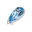 Tento prsten z 18kt bílého zlata s diamanty a topazem swiss je jako věčný příslib štěstí. Jeho jemný design a třpyt diamantů jsou jako jiskřičky na nebi, které září jen pro vás. Vaše šťastná hvězda, která zůstane navždy. Šperk je součástí kolekce Fantasy.