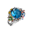 Prsten s topazem, diamanty a emaily Flower Liberty