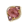 Tento prsten z 18kt žlutého zlata s diamanty a turmalínem pink je jako dílo umění. Každý kámen, pečlivě vybraný a vsazený, vypráví příběh radosti, inspirace a neopakovatelné krásy. Šperk je součástí kolekce Blossoms.