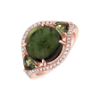 Prsten vyrobený z 18kt růžového zlata s diamanty a turmalínem green oslavuje nadčasovou krásu. Jeho subtilní třpyt diamantů zvýrazňuje ženskost a sofistikovanost. Šperk je součástí kolekce Blossoms.