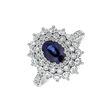 Exkluzivní prsten v 14kt bílém zlatě s diamanty a safírem, je mistrovským dílem šperkařského umění. Jeho jedinečný design a neobyčejná krása safíru odhalují skutečnou eleganci. Šperk je součástí kolekce Diana.