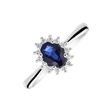 Tento nádherný prsten z 14kt bílého zlata s diamanty a safírem je kouskem přírody na vašem prstu. Safír symbolizuje moudrost a věrnost, a diamanty dodávají prstenu nádherný lesk a světlo. To je šperk pro ty, kteří hledají šperk plný elegance a šarmu. Šperk je součástí kolekce Diana.