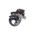 Jemnost a eleganci v sobě snoubí tento prsten z 18kt bílého a černého zlata s diamanty a safírem multicolor. Jeho subtilní design je dokonalým doplňkem pro každou významnou příležitost, dodává šmrnc a zároveň zdůrazňuje jemnou krásu nositelky. Šperk je součástí kolekce Animals.