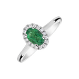 Prsten 14kt bílé zlato s diamanty a smaragdem je jako poklad ztraceného království. Jeho třpytivé diamanty a vzácný smaragd symbolizují luxus, moc a lákavou krásu. Šperk je součástí kolekce Diana.