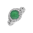 Tento prsten z 18kt bílého zlata zdobí krásné diamanty a smaragd. Je dokonalým doplňkem pro každou osobnost s vkusem. Jeho jedinečný design a nádherný smaragd dodávají šperku zářivou eleganci. Bude skvělým doplňkem vašeho outfitu a přinese vám spoustu komplimentů. Šperk je součástí kolekce Luxury Classic.