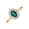 Snoubení 14kt žlutého zlata, diamantů a smaragdu v tomto prstenu vytváří odvážnou symbiózu, která je odrazem silné osobnosti a sebevědomé elegance. Luxusní šperky jako tyto nejenže zdůrazní vaši výjimečnost, ale také přinesou do vašeho života neopakovatelný nádech exkluzivity a noblesy, který si zasloužíte. Šperk je součástí kolekce Diana.