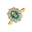 Prsten z 14kt žlutého zlata zdobený diamanty a smaragdem je jako procházka v zahradě plné květin a krásy. Jeho krásný smaragd a třpytivé diamanty vytvářejí šperk, který zaujme každého svou elegancí a krásou. Šperk je součástí kolekce Diana.