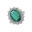 Prsten 14kt bílého zlata s diamanty a smaragdem symbolizující přírodní krásu a eleganci. Jeho svůdný třpyt je jako oslava harmonie a stylu, ideální pro ty, kteří si cení unikátního designu. Šperk je součástí kolekce Diana.