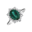 Prsten 14kt bílé zlato s diamanty a smaragdem je vyjádřením jak romance, tak i síly. Tento prsten spojuje krásu diamantů s jemným leskem smaragdu, vytvářejíce nepopsaný papír pro nekonečný příběh lásky a závazku. Šperk je součástí kolekce Diana.
