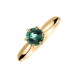 Tento prsten z 14kt žlutého zlata se smaragdem je elegantní, vkusný a vyroben s nejvyšší pečlivostí. Jeho nádherná kombinace barev okouzluje všechny milovníky drahokamů, kteří si váží jemných detailů a díla přírody. Šperk je součástí kolekce Classic First.
